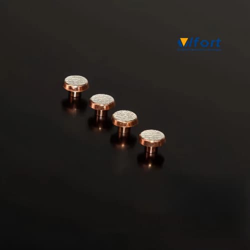 双金属复合铆钉 (Bimetal Rivets): 这是我们最受欢迎的产品。它由银合金工作层和铜基座复合而成,在保证卓越性能的同时,极大地为您节约了贵金属成本。